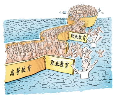 然而,职业教育往往是说起来重要、选择起来次要。追求学历教育,轻视技能教育;追求普通教育,轻视职业教育,以及公众对一些职业教育学校的调侃揶揄,反映出社会的普遍心理。这也不奇怪,在目前的招生体制下,重点院校“掐尖”,职业院校“掐尾”,高职院校一直被视为高等教育的末端,成为高考落榜生的“无奈选择”。从这个角度来看,大力发展职业教育,当务之急是转变观念,打破职业院校“低人一等”的形象。