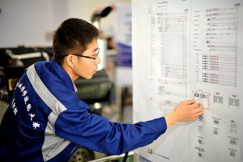 李新平是济源职业技术学校首批赴德国学习的教师之一,参加了项目教学法培训,回来后主编了《汽车维修基础》等两本省内通用教材。记者看到,李新平把课堂搬到了车间里,学生们一个个穿着工装,4人一组,有的递钳子,有的在拧螺丝,有的在查找资料,配合默契。“课桌+设备+师生=应用型课堂。这样的课堂不枯燥,我喜欢这样的上课风格。”学生张志锋说。
