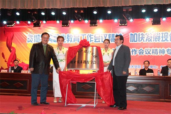 兵团教育局副局长刘景峰和兵团职业技术教育学会会长张元柱为学会揭牌