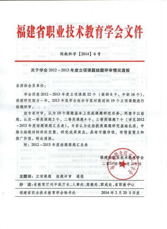 2014年4月18日,福建省职业技术教育学会学校安全工作委员会第一次委员代表大会在福建船政交通职业学院隆重召开。全省17 所高职院校和47 所中职学校代表参加了会议。