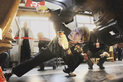 选手在进行内燃机车电气动作试验竞赛。 (张群 摄)影报道