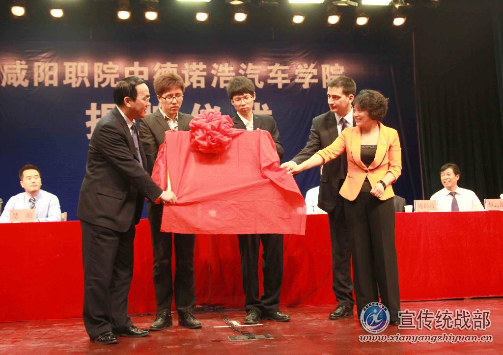 5月8日,咸阳职院中德诺浩汽车学院揭牌仪式隆重举行。学院院长张存,德国F+U萨克森职教集团亚太区首席代表Eric先生,中德诺浩(北京)教育投资有限公司总裁许婕女士共同为“中德诺浩汽车学院”揭牌。据悉,中德诺浩与高职院校合作办学在陕西尚属首家。