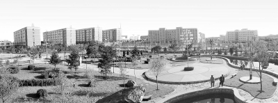 走进校门,一座座教学楼、实验楼、图书楼、办公楼,在绿树迎风、花坛锦绣、假山亭榭、雕塑景观、文化长廊、音乐喷泉的映衬中,将学校烘托到了极致。感悟其中,一栋栋建筑群均采用白色作为主色调,恰似冰清玉洁、又如梨花堆雪,美不胜收。特别是学院建造的“憩韵湖”,位于校园中部,湖东有石山,湖西有长廊,成为了这所学院的标志。漫步其间,绿毯铺地、云杉挺拔、湖水幽深、九曲回肠、鲤鱼嬉戏、桃李绽放。它就像是一个硕大的墨池,吸引着万千学子汇聚在憩韵湖畔,拈来抒写人生的豪迈之笔,从这里起航、飞向远方。