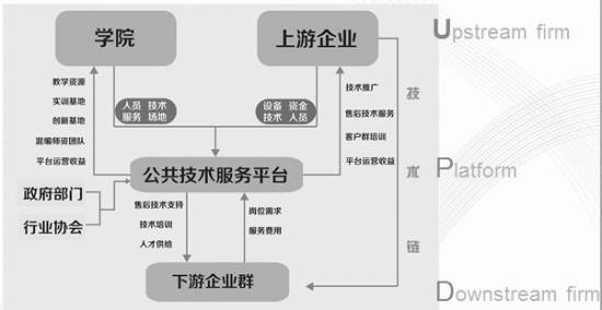 2. 创新“UPD”校企合作模式。学院在校企合作方式上“与技术链的上游企业、行业、政府合作共建公共技术服务平台,为下游企业提供技术支持和人力资源服务,为专业群提供实训基地、创新基地和校企混编师资团队”的第三代校企合作模式(简称UPD模式)。政、校、行、企共建公共技术服务平台,有机整合了上游企业、行业、政府在合作育人方面的技术、资源优势和下游企业在合作就业方面的优势。近年来,学院先后与中兴通讯、省通信管理局、中国质量认证中心(CQC)、省无线电管理局、省中小企业局、等单位合作成立了通信技术服务平台、新能源技术服务平台、江苏省中小企业信息化服务平台等载体。通过混编师资团队构建,企业技术、设备引进,实现专业教学软硬件资源与企业需求同步更新,保障了人才培养的适应性。在UPD模式下学生由于接受与下游企业员工同样的培训,可以直接上岗,深受企业的青睐,就业对口率明显提高;而且较好地解决了校企合作中学校“一头热”的问题,使企业资源源源不断的反哺到专业教学中,人才培养质量得到了坚实的保障。这一模式获得2013年江苏省高等教育教学成果特等奖。