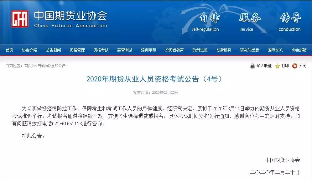 2020年期货从业人员资格考试推迟举行