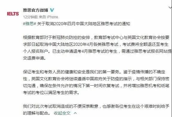 (来源:雅思官方微博截图)