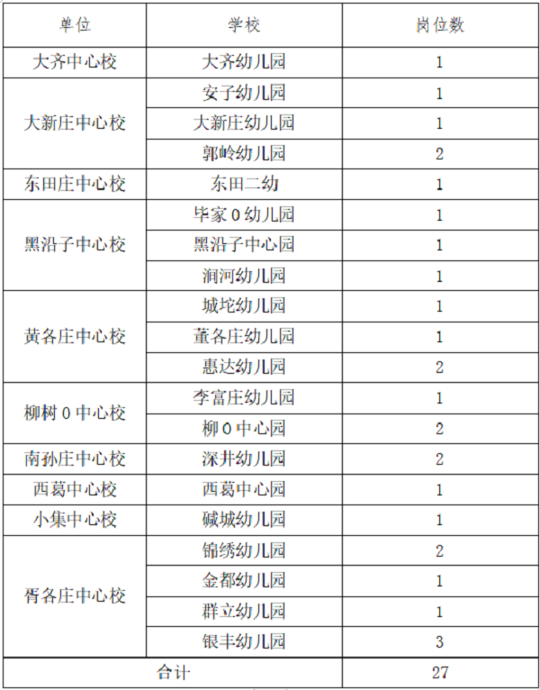 [导读]一、招聘数额 共27名(具体见岗位信息表)。 二、招聘条件 具有中华人民共和国国籍,遵守国家的法律、法规,无不良社会行为记录,具有良好的职业道德,热爱幼教事业,身心健康,要求年龄在18周岁以上、30周岁以下(1992年8月31日以后出生)、具有专科及以上学历、持有教师资格证。 三、管理形式 被聘人员实行劳务派..